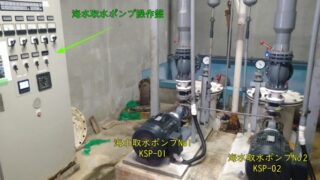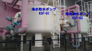 海水取水濾過槽(KSF-01/02)は海水取水ポンプ(KSP-01/02)で取り込んだ海水を、海水原水槽(T01)へ送る前に濾過するための濾過槽です。KSF-01KSF-01は通常の圧力式濾過槽と同様に濾過入口出口・逆洗入口出口がありますが...