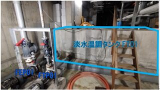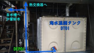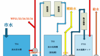 SP21は、淡水処理槽(淡水脱塩槽)T03から、館内の各淡水水へと脱塩水を補給するポンプです。通常のポンプと違い、加圧給水ポンプと呼ばれるタイプのポンプで、当館にはSP21のほか上水給水用のSP-D01とSP-G01があります。一般的な加圧...