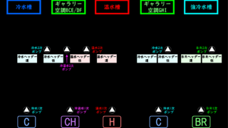 注意:本ページの図はあくまで理解しやすく省略した概念図です。正確な配管構造は中央監視フロー図で確認してください。(追記:ページ下方にフロー図に冷温水の流れを記入したフロー図を追加しました)当館の熱源機器と補機ポンプ当館には飼育水槽および空調...