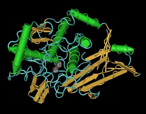 ヘモシアニン 用語 2026.03.23 ヘモシアニンとは、銅を含む酸素運搬タンパク質です。主に軟体動物や節足動物の体液中にあり、ヘモグロビンのように酸素を運ぶ役割を持ちます。 酸素を結合していないときは無色ですが、酸素と結び付くと青色を示します。これは、ヘム鉄ではなく銅原子が酸素結合に関わるためです。1個の酸素分子が2個の銅原子に可逆的に結合します。